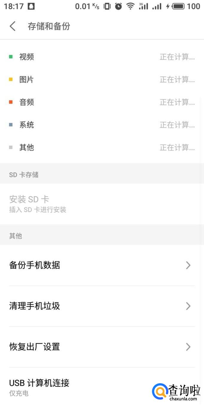 进入存储和备份设置界面,在下方其他中点击“恢复出厂设置”