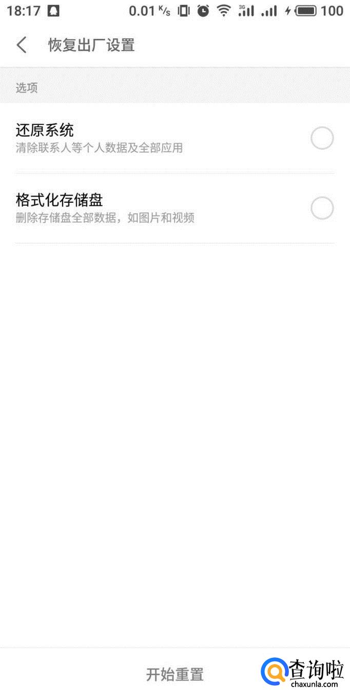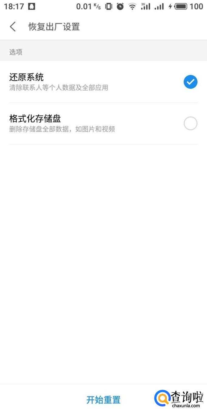 重置项目之后,点击下方“开始重置”即可进行恢复出厂设置操作。