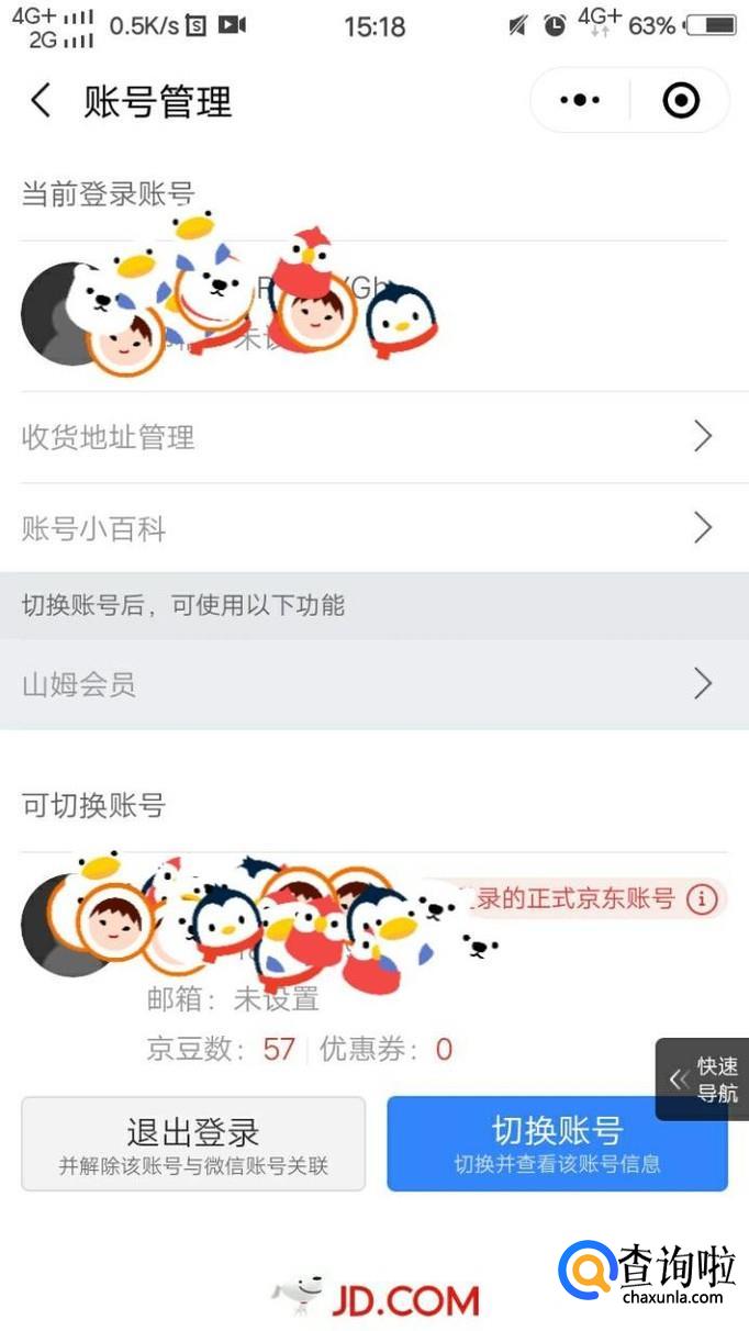 最后点击自己的账号后边的账号管理,再点击退出登陆就可以解绑了。