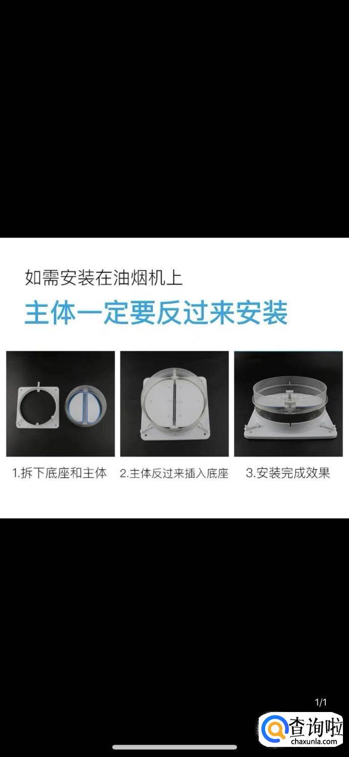 如果要安装在油烟机上,不安装在管道上的话,一定要注意反过来安装。