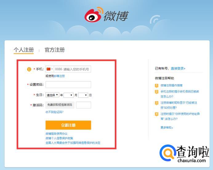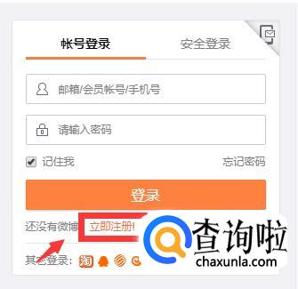如果没有新浪微博账号可以点击登录下的“立即注册”注册账号。