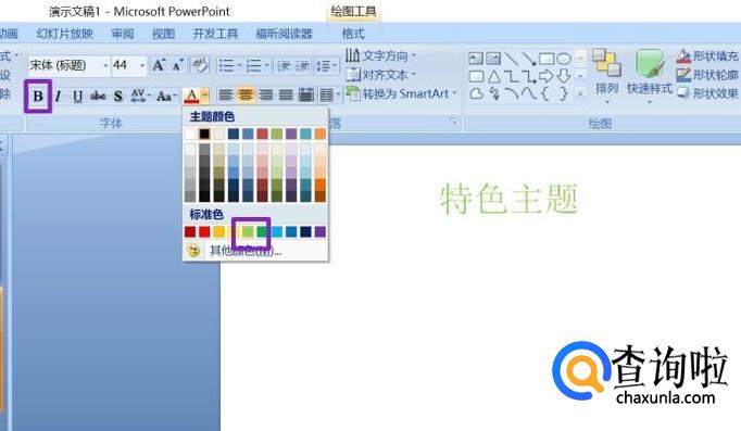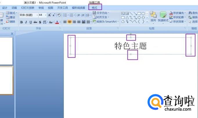 左击选择此主题的文本框,之后在菜单栏中便会显示格式;