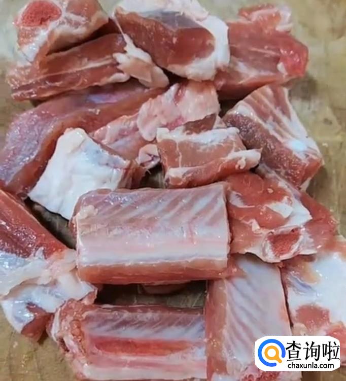 将排骨剁成小段。