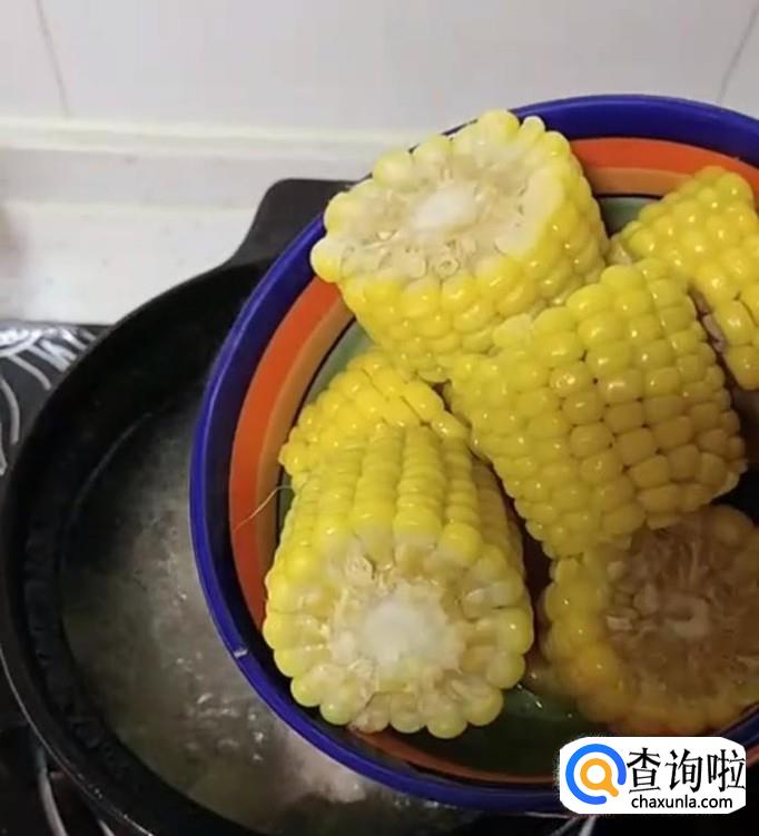 砂锅内加入玉米。