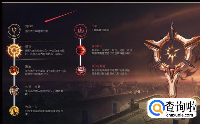 主符文精密:精密这个符文系适合AD射手英雄主点,可以强化普通攻击增加攻击速度。副符文可根据英雄的技能搭配主宰或者是巫术。