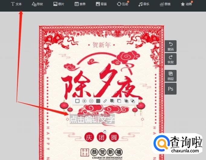 上面一栏可以对细节作出编辑。可以根据您想要的效果来编辑。比如您有想要添加的文字,就按箭头所示进行添加,添加图片音乐等与此相同。