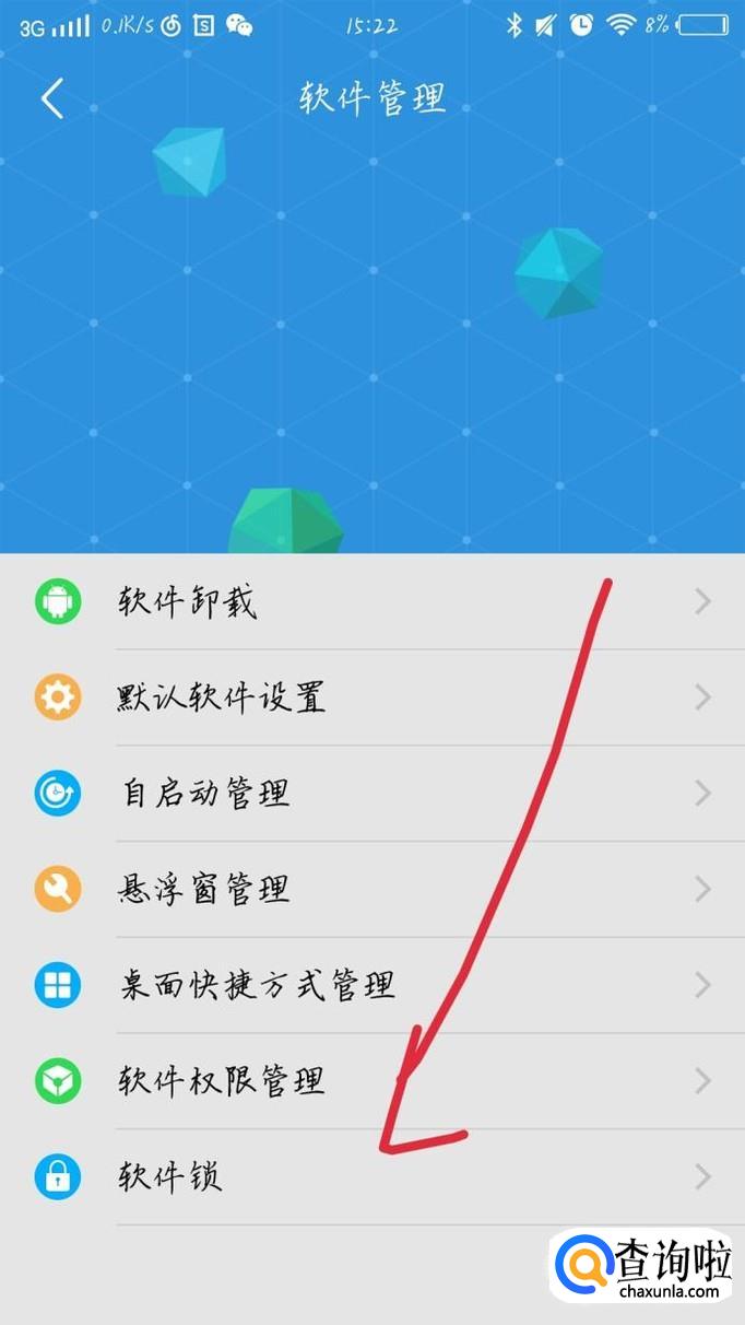 点击“软件锁”这个选项,如图1箭头所示。你会看到出现一个新的界面,如图2所示。