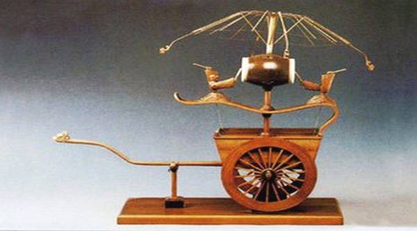 还原指南车。马钧认为古时曾有过指南车,但已失传了,谁也没见过指南车是啥模样。马钧运用差动齿轮的构造原理研制了一种由车子和一个木人构成的指向机械,车中装有可自动离合的齿轮传动装置,并与木人相连,木人有一只手指向前方。不管车辆朝什么方向行走,在自动离合齿轮装置的作用下,不管车辆如何的翻动,木人的手都指向南方。