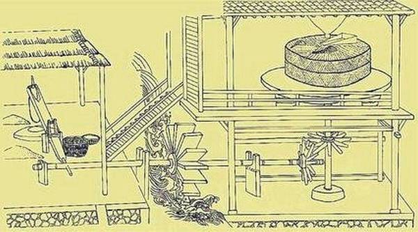 马钧大约在公元227至239年间创造一个由水轮转动的大型歌舞木偶机械,包括以此水轮带动舂、磨。无疑,这是根据当时流行的水碓、水磨而设计的。水磨是用水力作为动力的磨,在马钧之后,杜预造连机碓,其中也可能包括水磨。