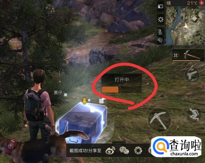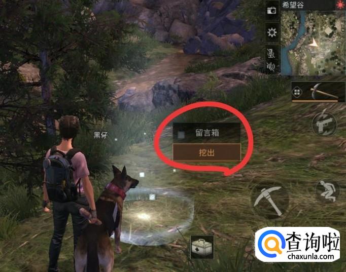 在野外找到留言箱,屏幕将自动跳出是否打开,点击“挖出”留言箱。