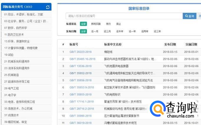 在国家标准执行目录中,可以直接查询需要查询的标准执行号,甚至还可以看到每一个标准的发布与实施时间。