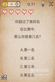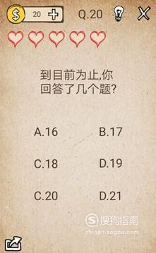 这关明显是18关,但作者把序号故意调成了20,来迷惑玩家,所以共答对了17道题。