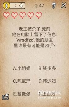 点提示,然后点“我要提示”:G.没有答案,貌似这是一个新选项。然后点文字与选项之间中间的空白,即可过关。