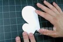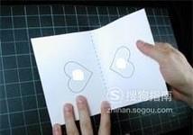 拿出另一张卡纸,画出两个对称的小心形(之间的距离小于剪下的两个小心之间的距离)