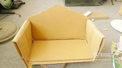 然后我们把上一步剪好的纸箱子,用透明胶或者胶水粘到一起,粘成如图所示的样子,这样猫窝的雏形就做好了。