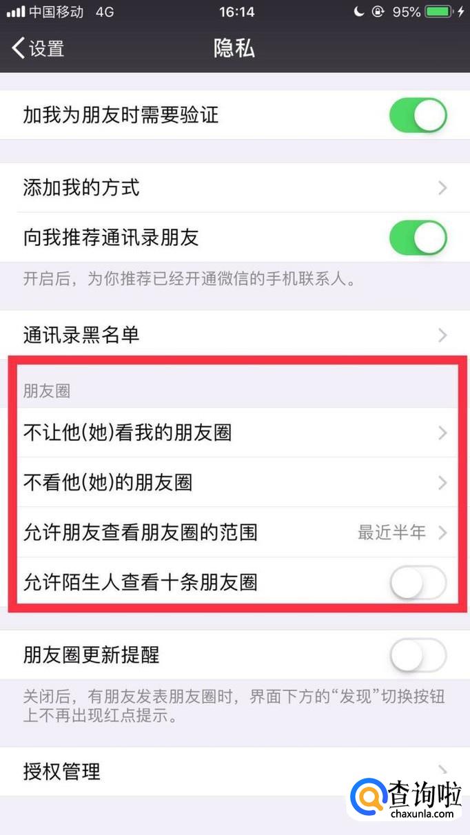 最后点击朋友圈,并进行相关的隐私操作就可以了。你学会了吗?赶快动手试一试吧。