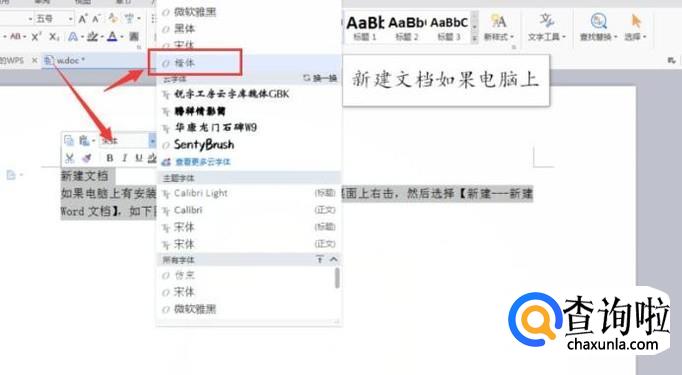然后打开这张Word文档,在文档中写字,然后选择它,会弹出一个窗口,将字体更改为黑体,如下图所示: