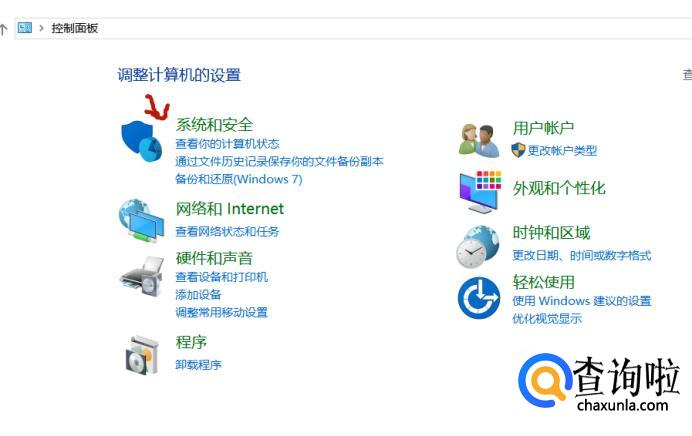 点击“系统和安全”。