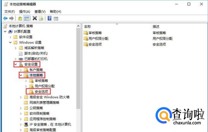 在安全设置中找到本地策略,找到安全选项。