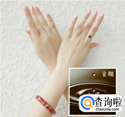 将手放入醋水中进行浸泡,可以有效地去除手上的死皮与脏物。可以使手保持清爽、干净,不仅可以使手更为白嫩,而且,还会紧致皮肤,具有瘦手的效果