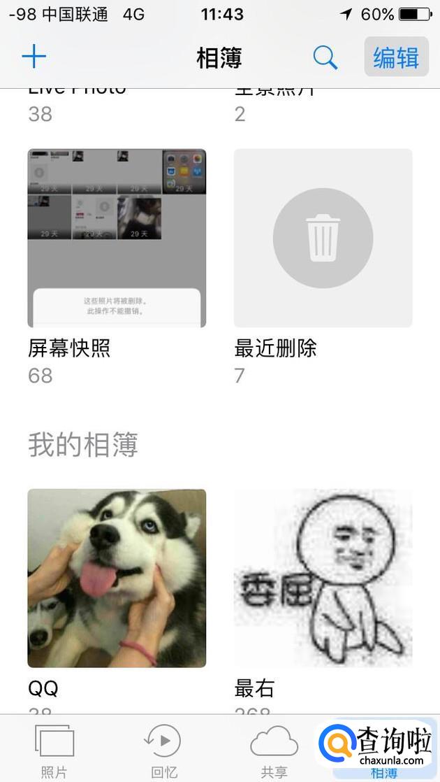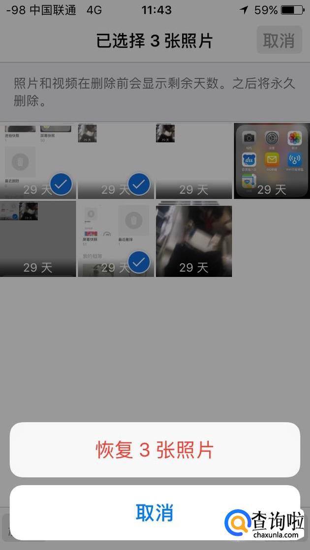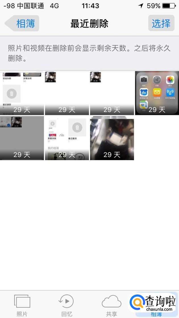 点击该相薄,我们就能看到自己最近删除的照片,一般而言删除的照片在30天内都可以恢复。