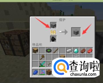 石头烧制完成后,将三个石头一排放在工作台中,三个石头可以合成出6个石台阶,如果需要很多石台阶,需要多放一些石头。