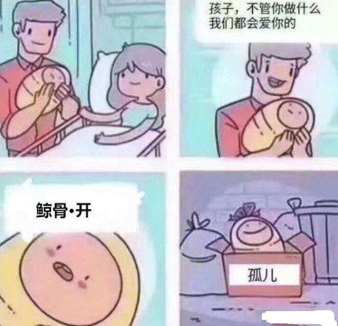“鲸骨开”是阴阳师角色久次良协战的普攻语音 ,很多玩家在游戏中被这个技能秒杀,由此这个梗就诞生了。玩家们为久次良做了各种的表情包,用来表达在崽战时受到的创伤。