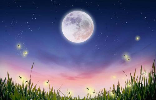 4、圆圆的月亮像一面大镜子挂在黑黑的天空中,远处的星星一闪一闪的就像一颗颗美丽的珍珠。