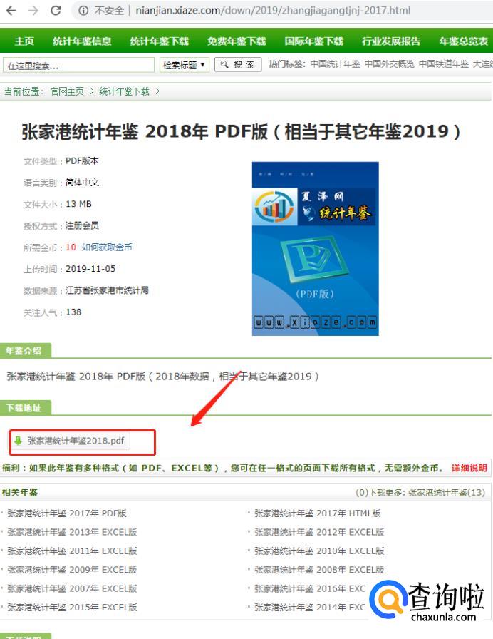 随机找一篇需要的年鉴,点击【下载】,这里选择的是张家港统计年鉴2018版。