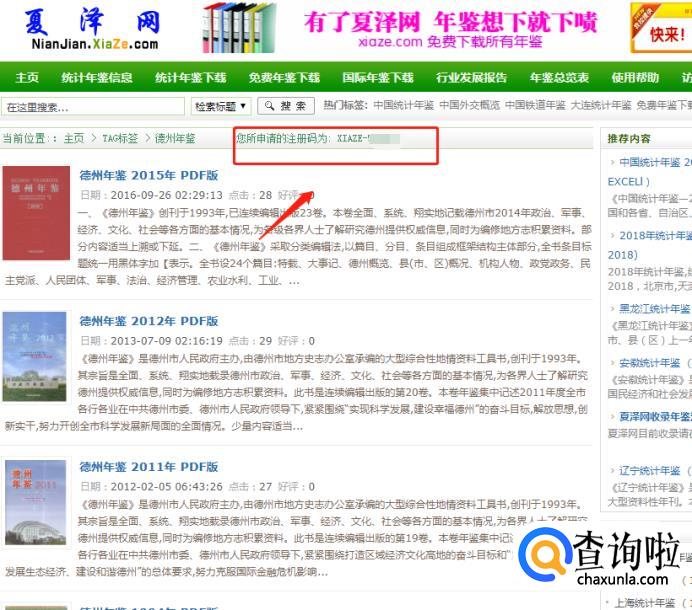 夏泽网提供许多免费年鉴下载,解决了很多同学写论文找数据难的问题,但是夏泽网很多年鉴需要领取注册码,注册账号才能看到,很多同学还不知道如何领取注册码,今天就教大家注册码领取方式。