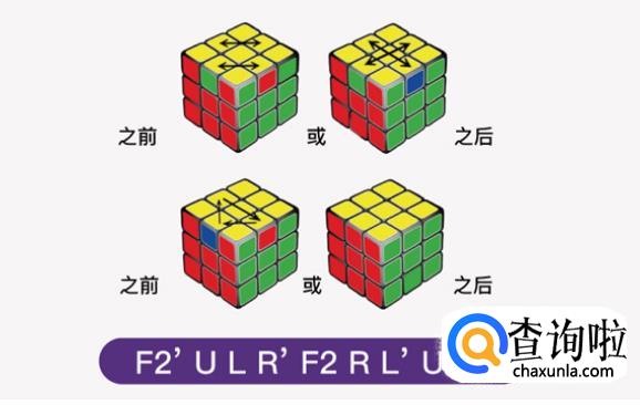 下一步将魔方的黄色角块调整到十字周围,这里有点难度,看口诀提示吧。