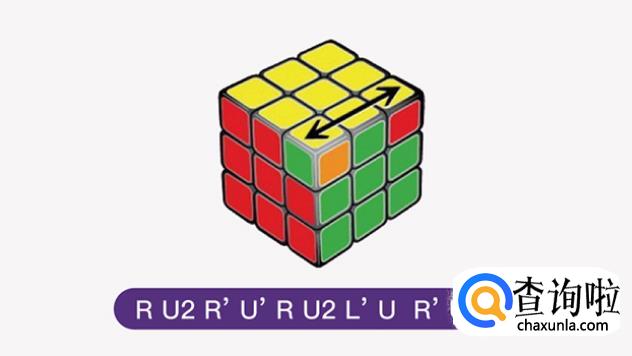 再将顶层(应该是黄色)边块调整向上,做出黄十字。若按照口诀转动1次之后,顶层没有出现黄色的十字,可按照口诀重复转动,直到黄色十字出现为止。