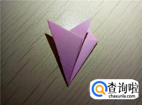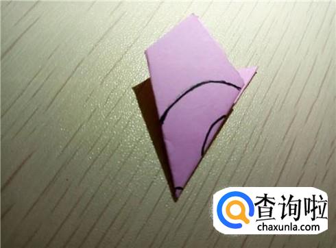然后找准三角形最下方的那条长边,选中间点,把右边的角给折起来。