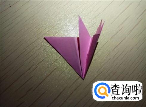 然后再找折起来的那个三角形最长边的中间点,对半折起来。