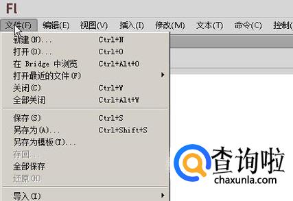 那么,这就进入到flash舞台界面里。我们看界面上面的菜单栏这里。