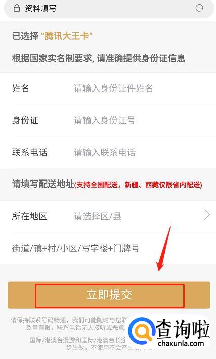 填写好个人资料后,点击【立即提交】,就可以免费领取电信大王卡,大王卡目前支持各类视频网站免流量播放。