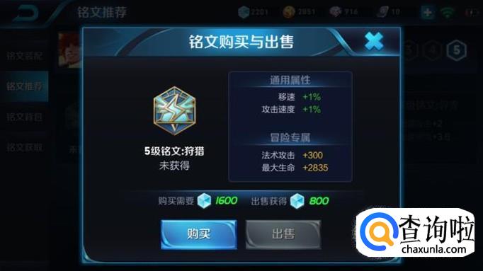 蓝色铭文小编我会选择五级铭文:狩猎*10