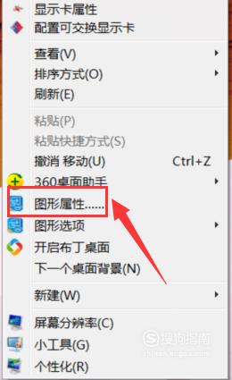 将页面调整成在电脑桌面页,单击鼠标右键,在出现的菜单栏中选择(图形属性),打开英特尔核芯显卡控制面板。