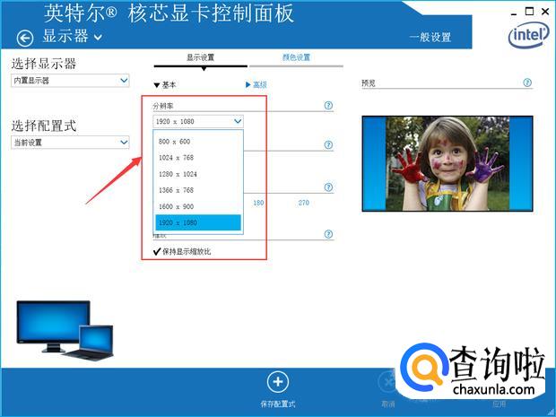 在显示器中将分辨率改为自己喜欢的分辨率,也就是游戏体验最好的分辨率。