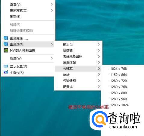 在桌面点击右键,设置完后退出控制面板,再用如下方式调回平常用的分辨率,进入游戏就会自动调整分辨率实现全屏,退出后又不影响正常使用。