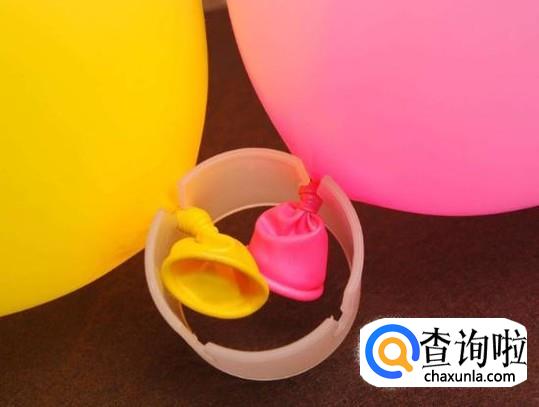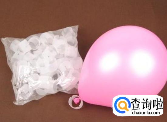 拿一个环扣,上面有四个缺口,把气球的结放进环扣中,一个环扣放四个气球。用这样的方法,可以做许多四个一环的气球。