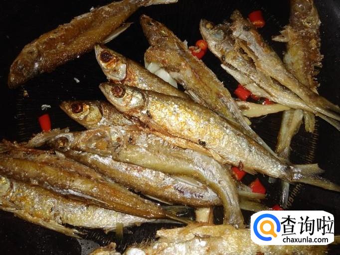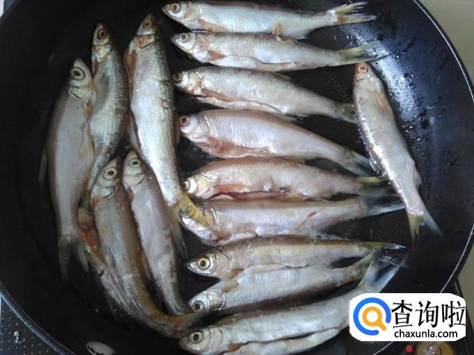 热锅下油,把鱼均匀地摆在平底锅,然后撒少量的盐花用小火煎,煎4分钟左右熄火,停5分钟左右再开火,反复几次这样,一直煎到鱼干水了。
