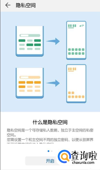 点击【隐私空间】,选择【开启】。