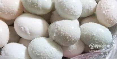 然后我们要用高浓度的白酒把洗干净晾干的鸭蛋泡一泡,然后把食盐裹在鸭蛋上面。