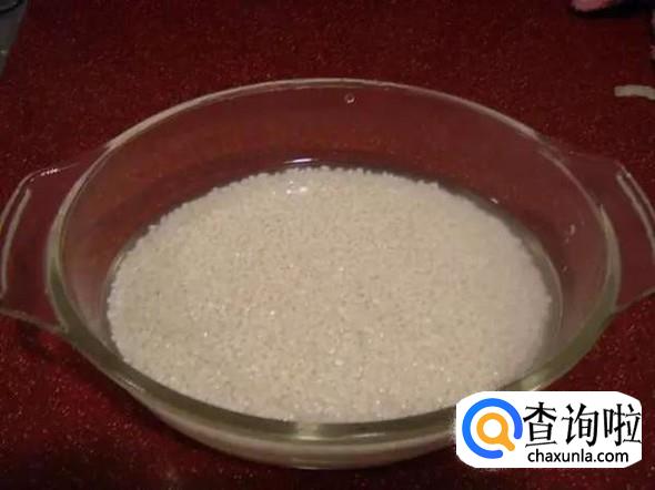 先把糯米洗干净放在一个盘里面加上水泡上四五个小时,这样子米软和煮的时候可以节省时间,熟得也快。
