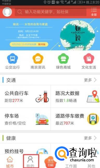 进入我的南京后,我们点击我的;