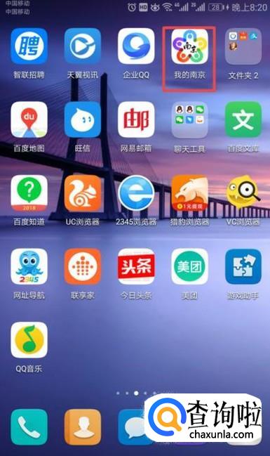首先,我们需要在我们的手机上安装一个我的南京这个app,然后我们点击打开它;