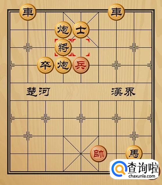 红方走兵四平五将军,黑方只能走将5平4躲避。