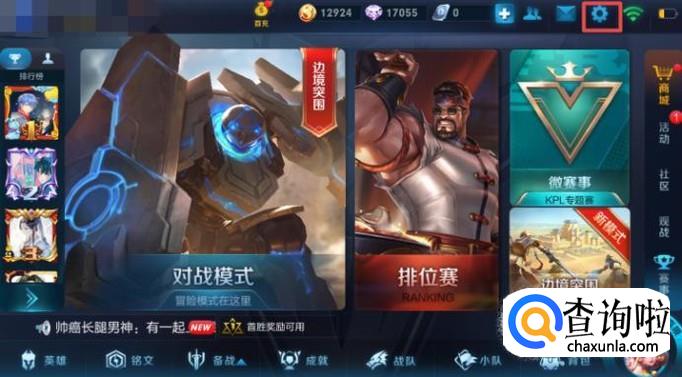 首先,我们打开我们手机上的王者荣耀,然后我们登录进入,进入游戏后,我们点击右上角的设置;