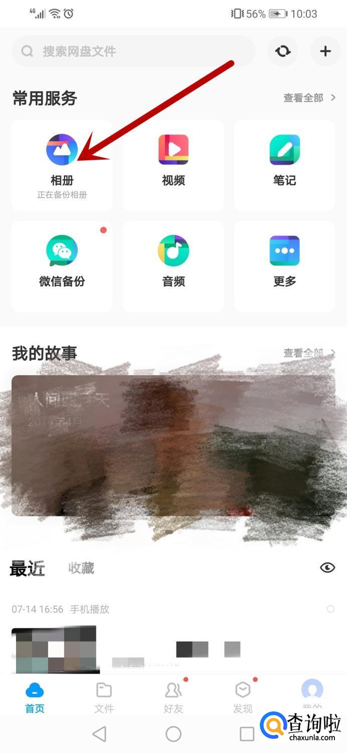 打开百度云,进入首页,点击相册。